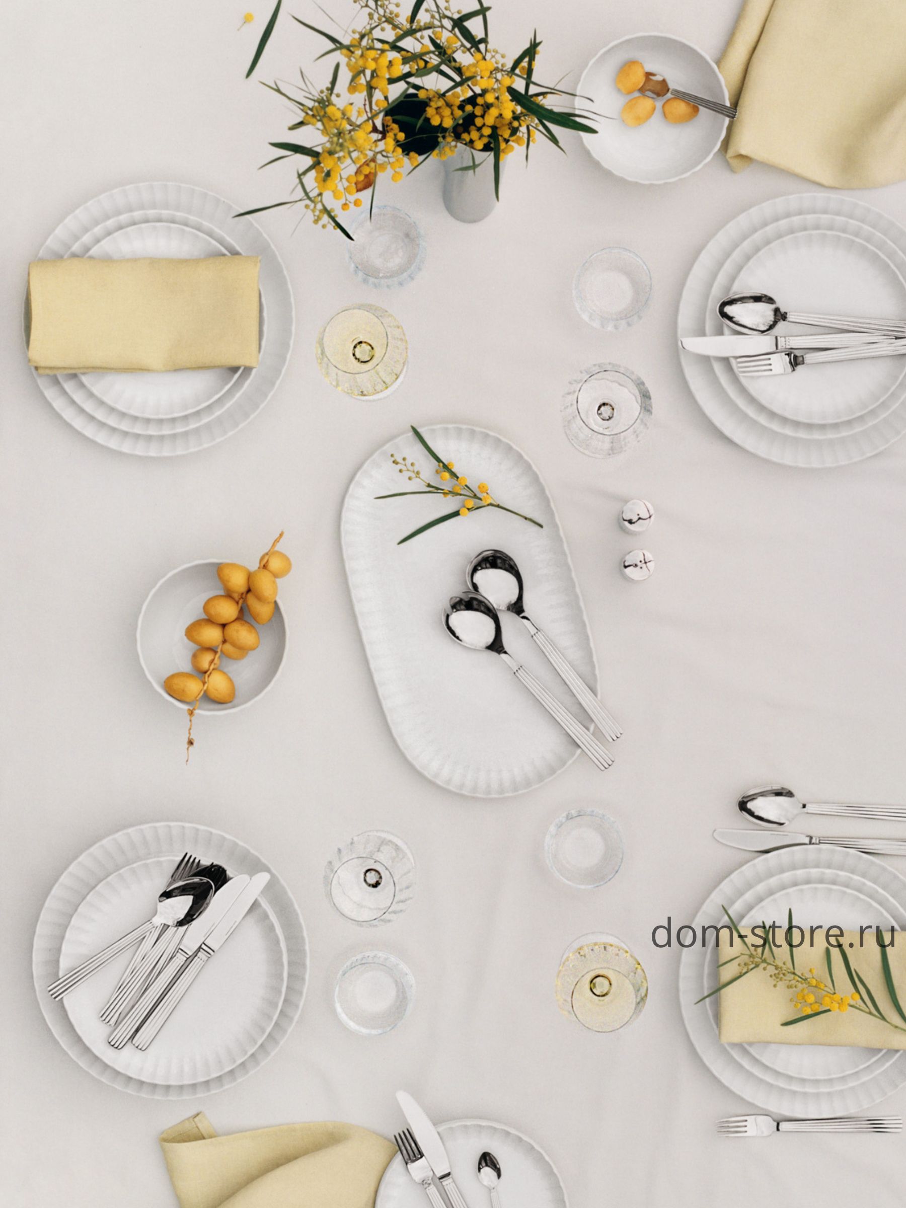 Дизайн основан на знаменитой коллекции Bernadotte от Georg Jensen, отличающейся характерными мягкими рифлениями и плавными линиями.