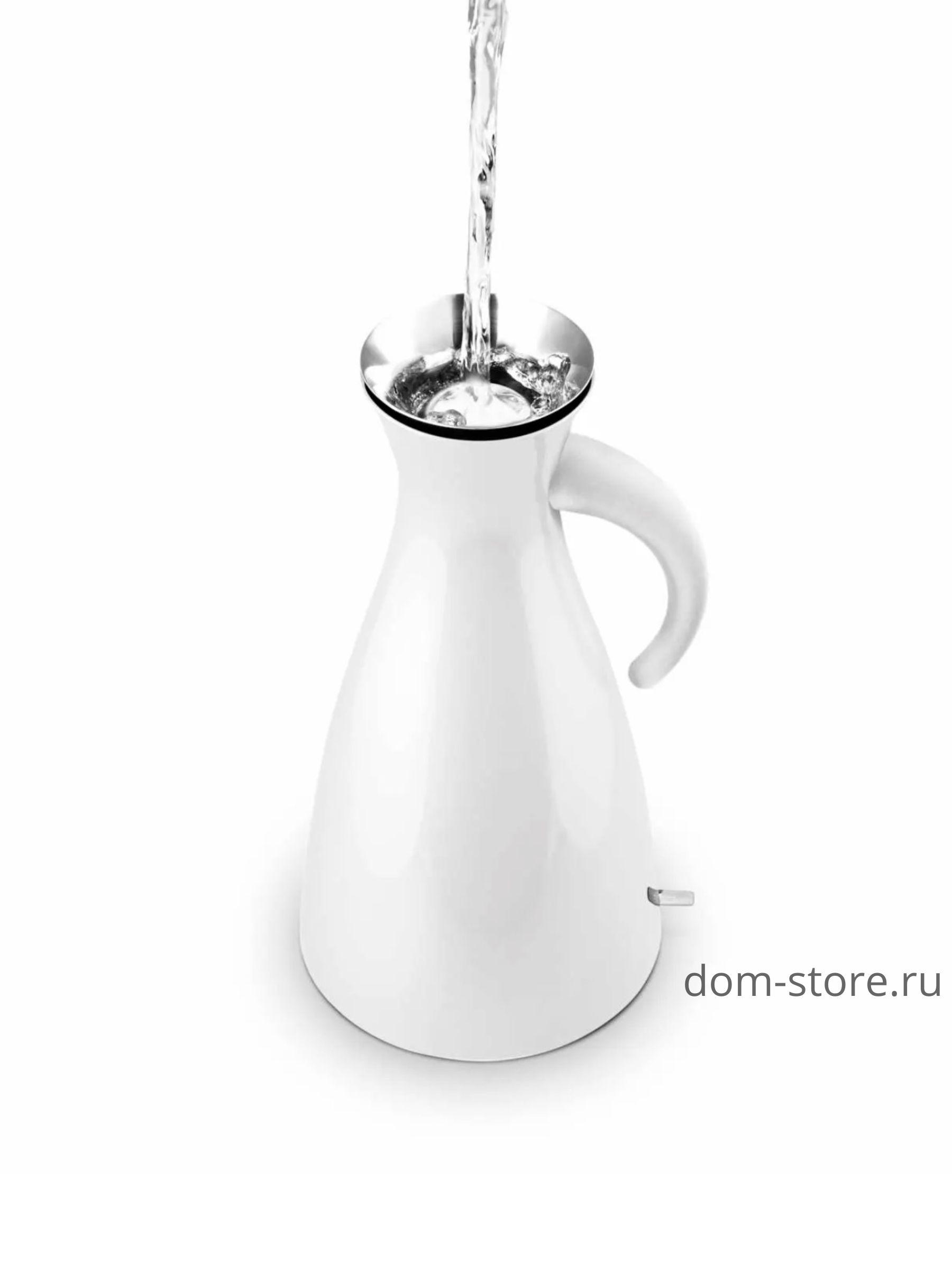 Электрический чайник от Eva Solo предназначен для того, чтобы его можно было вынести из кухни и поставить на диванный столик. Он имеет тот же популярный дизайн, что и вакуумный кувшин Eva Solo с носиком для слива без капель, чтобы предотвратить проливание.