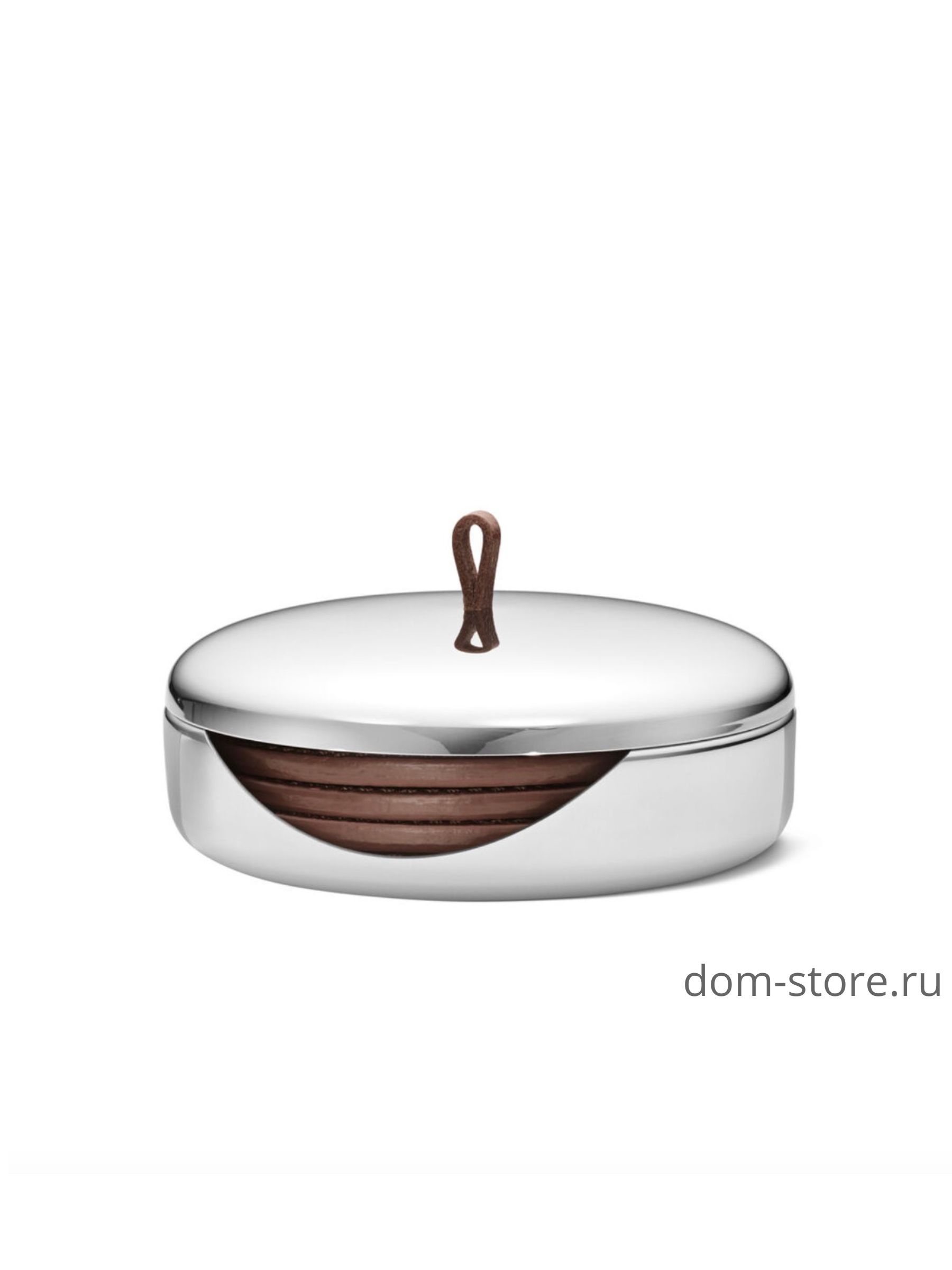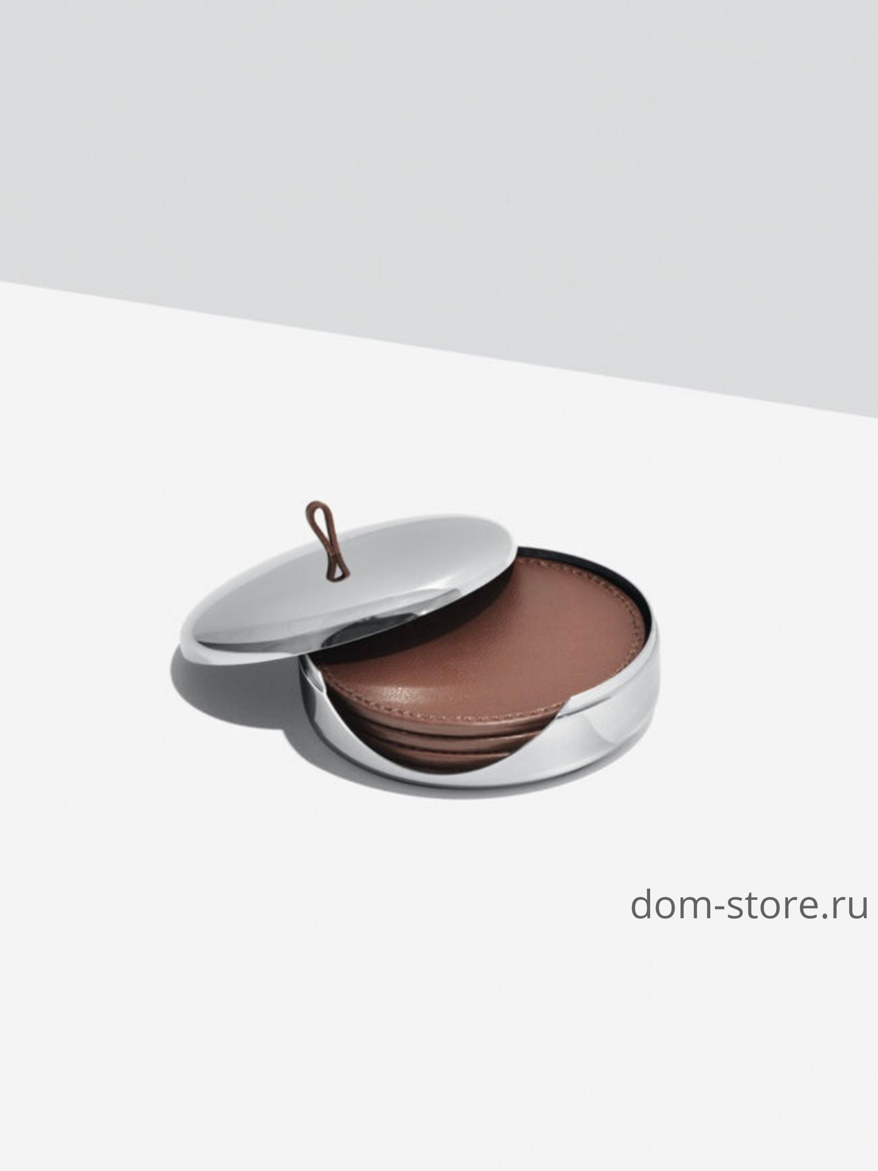 Четыре подставки сделаны из той же кожи, что и другие продукты Sky. Корпус изготовлен из зеркально полированной нержавеющей стали с кожаной ручкой в тон.