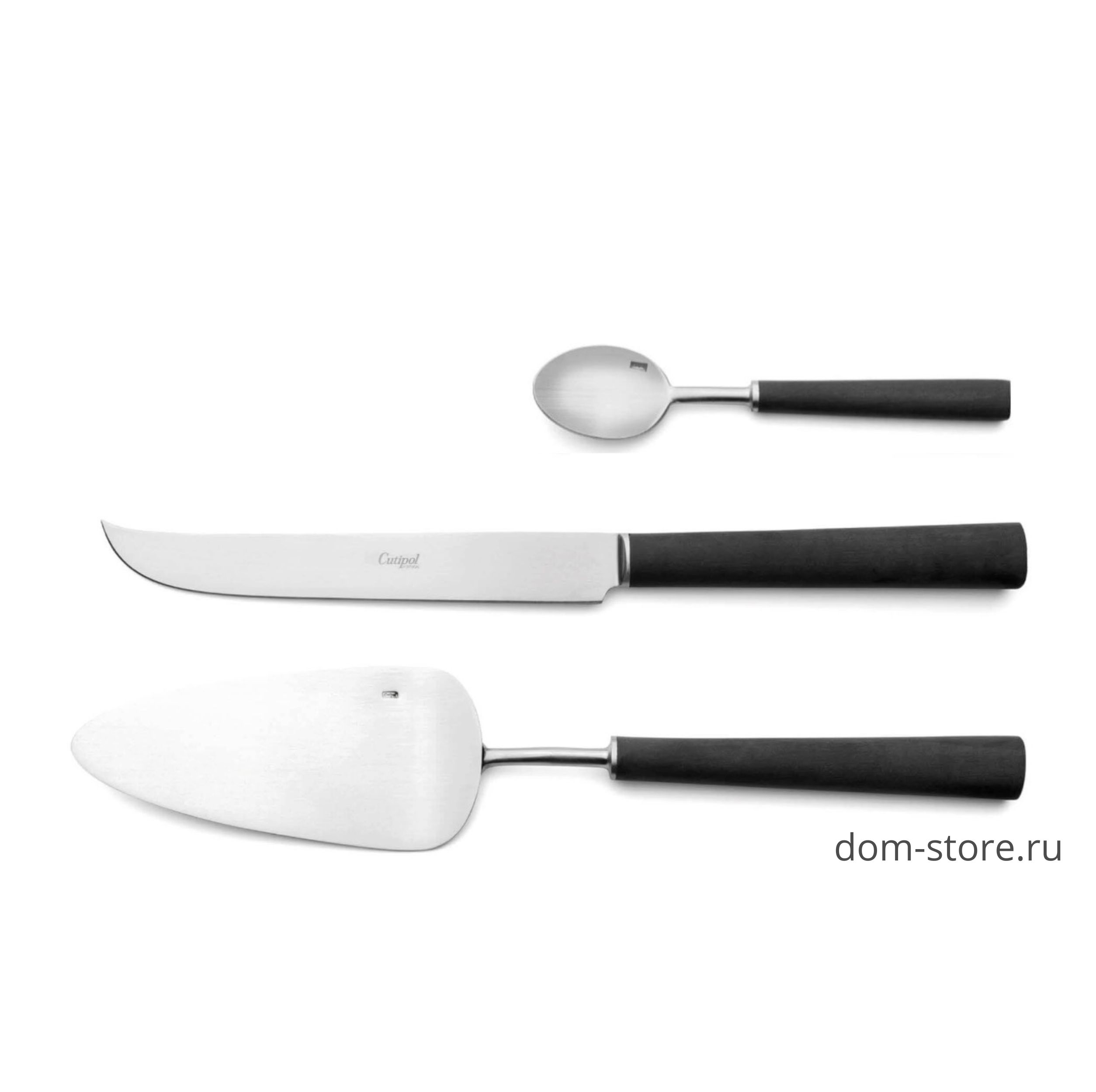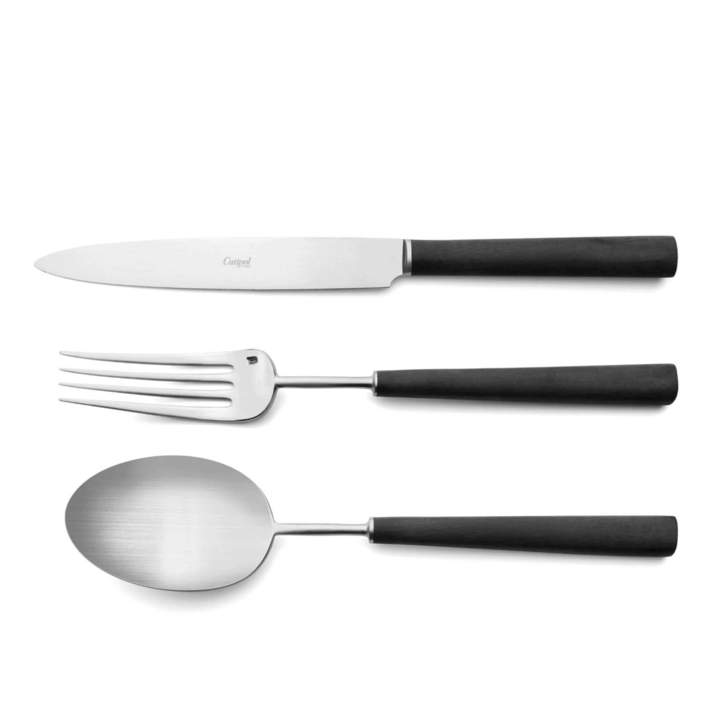 Коллекция столовых приборов Cutipol Ebony разработана Хосе Хоакимом Рибейро, прекрасное дополнение к любому изысканному декору стола. Ebony является одной из самых популярных серий марки Cutipol. Приборы из нержавеющий стали хром/никель 18/10, без привычного зеркального блеска, выглядят более современно и солидно. Каждый столовый прибор вытачивается из цельного куска нержавеющей стали толщиной до 3,5 миллиметров. Уникальная форма предметов входящих в коллекцию не оставит равнодушными ценителей хорошего дизайна.