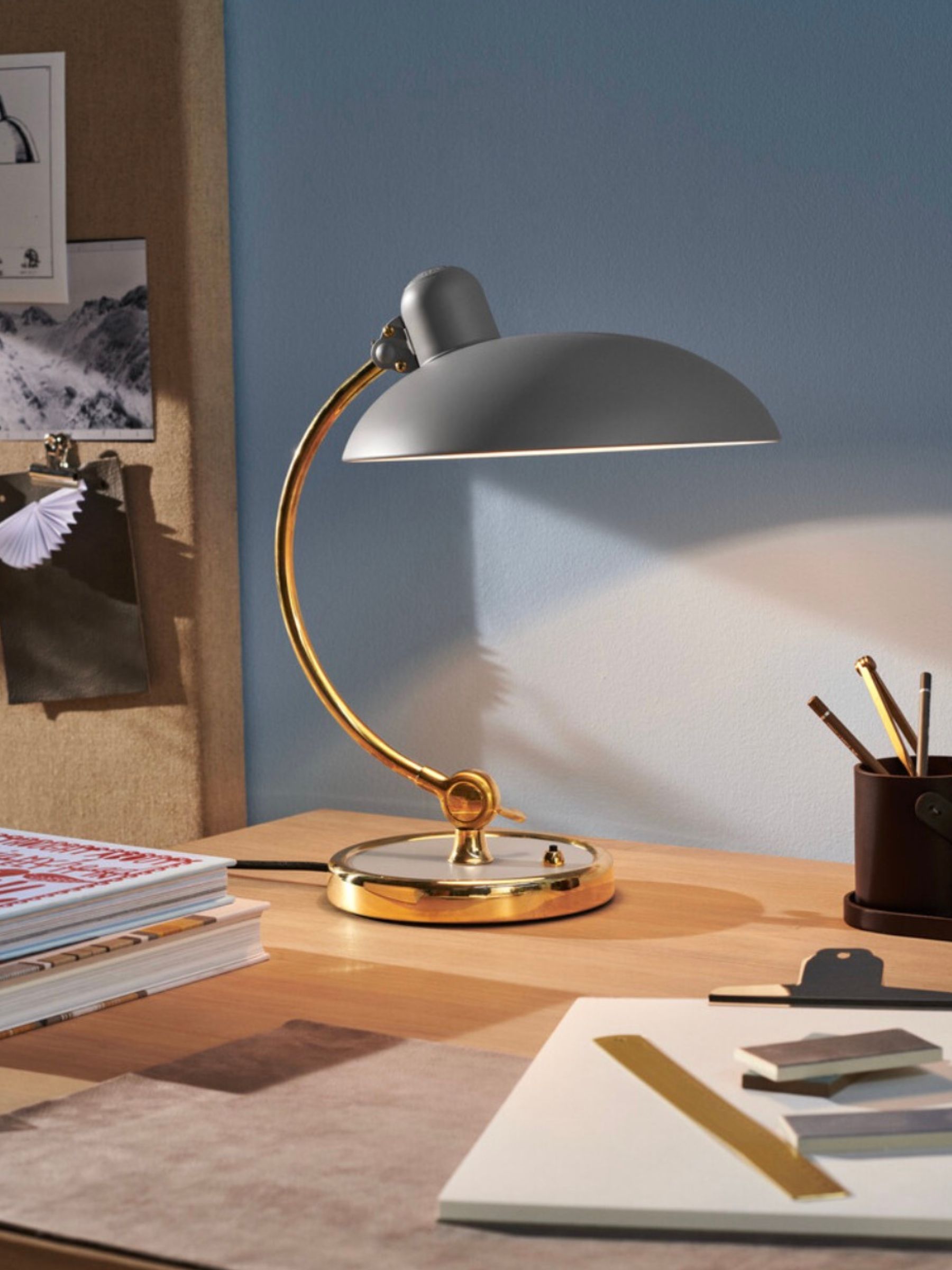 Настольная лампа Kaiser Idell Luxus, также известная как номер модели 6631, — это классическая лампа, разработанная немецким дизайнером Кристианом Деллом и одно из самых знаковых творений стиля Баухаус. Впервые представленная в 1936 году, металлическая лампа, типичная для Баухауза, прежде всего функциональна благодаря наклоняемым основным и поворотным абажурам; однако изогнутые формы и хромированные детали придают светильнику элегантный, даже роскошный вид.