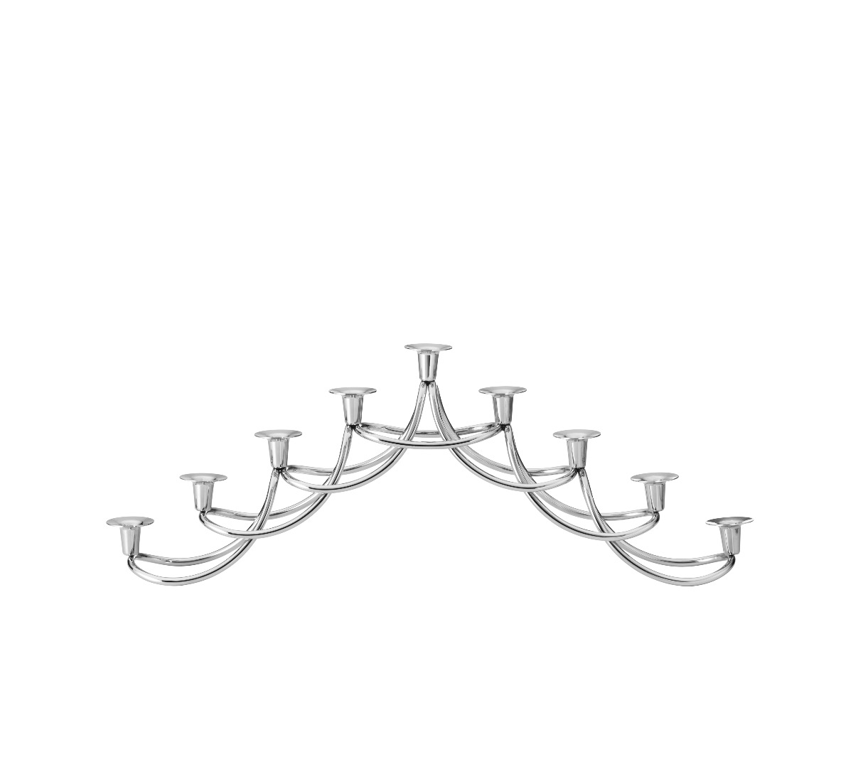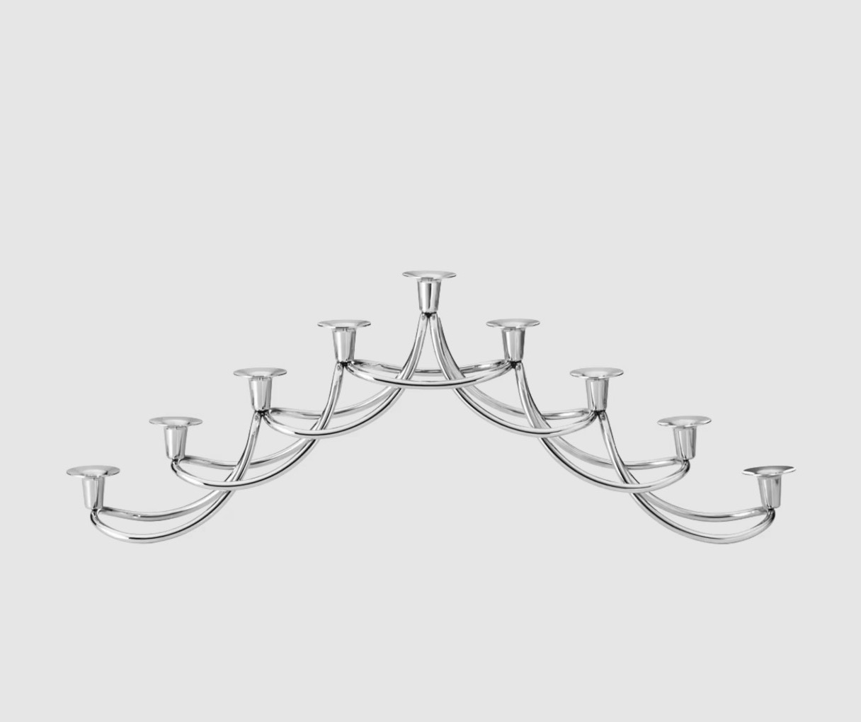 Эта менора, представляющая собой оригинальную интерпретацию классической меноры благодаря органичным, причудливым формам, идеально подходит для такого случая. Изготовленная из зеркально отполированной нержавеющей стали, она вмещает девять ханукальных свечей (диаметром 9,72 мм).