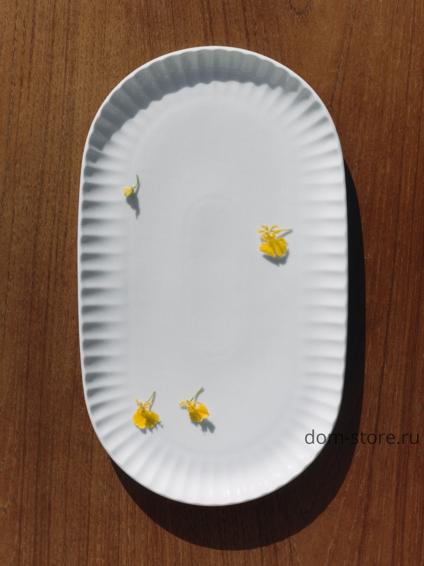 Это сервировочное блюдо формы coupe выполнено из белого фарфора и дополнено мягко волнистым краем, который придаёт сервировке изысканность и элегантность.