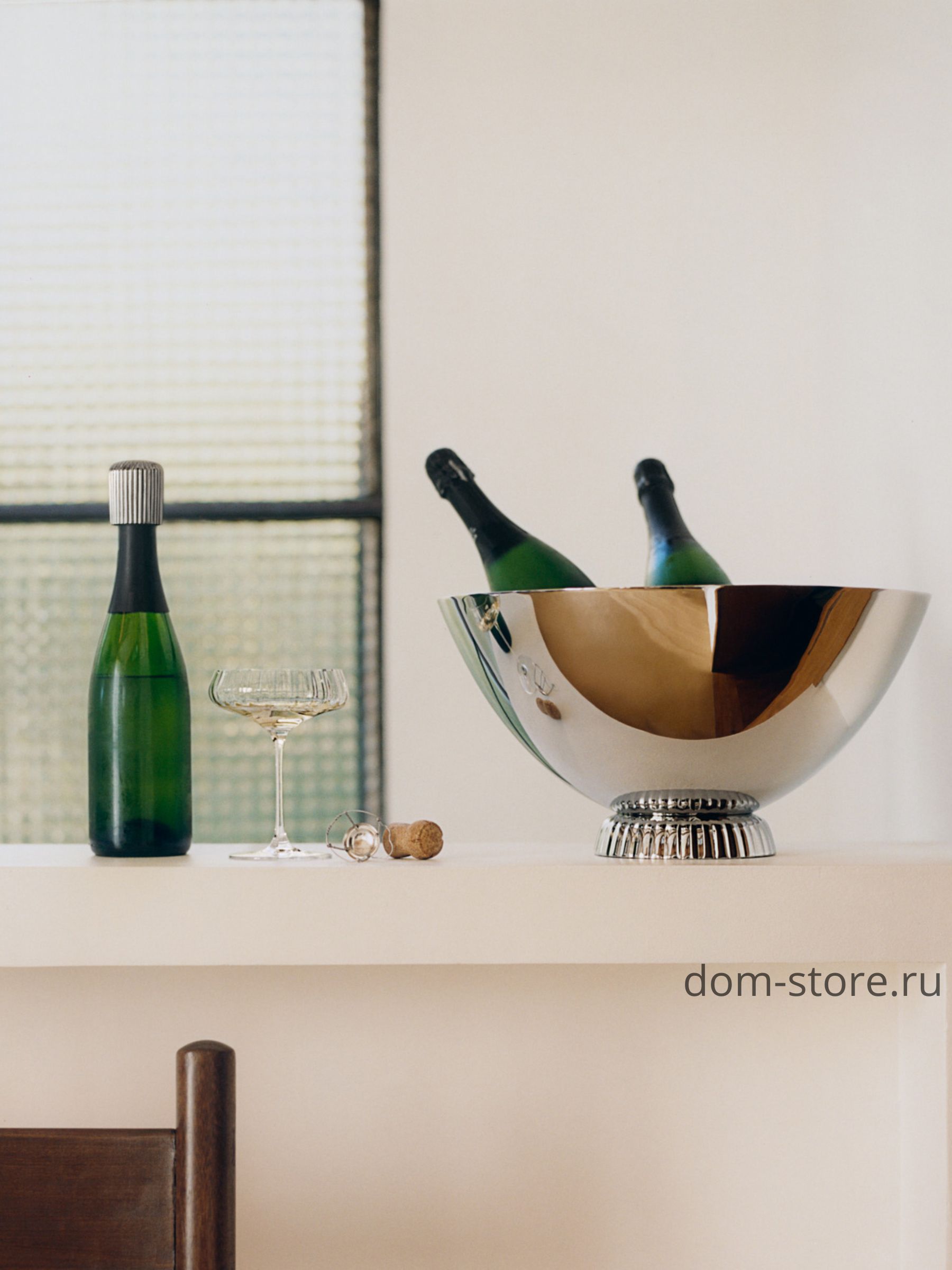 Элегантное изделие из нержавеющей стали с деталями, вдохновлёнными фирменным стилем и рифлёным узором Sigvard Bernadotte, это ведёрко для шампанского вмещает до двух бутылок и оснащено двойными стенками, которые позволяют дольше сохранять напитки охлаждёнными.